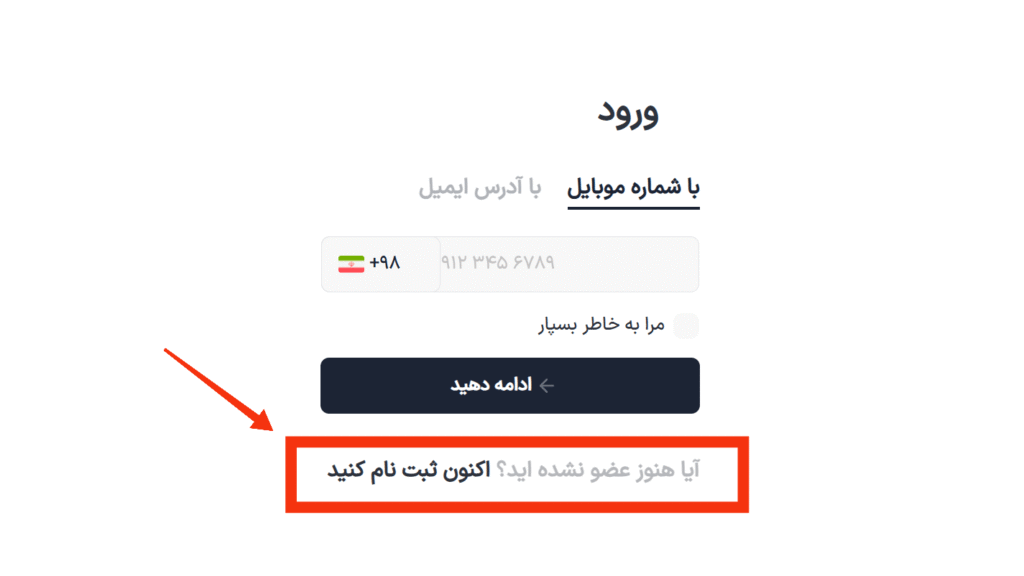 سپس از بخش پایینی صفحه، عملیات ثبت‌نام را انجام دهید.