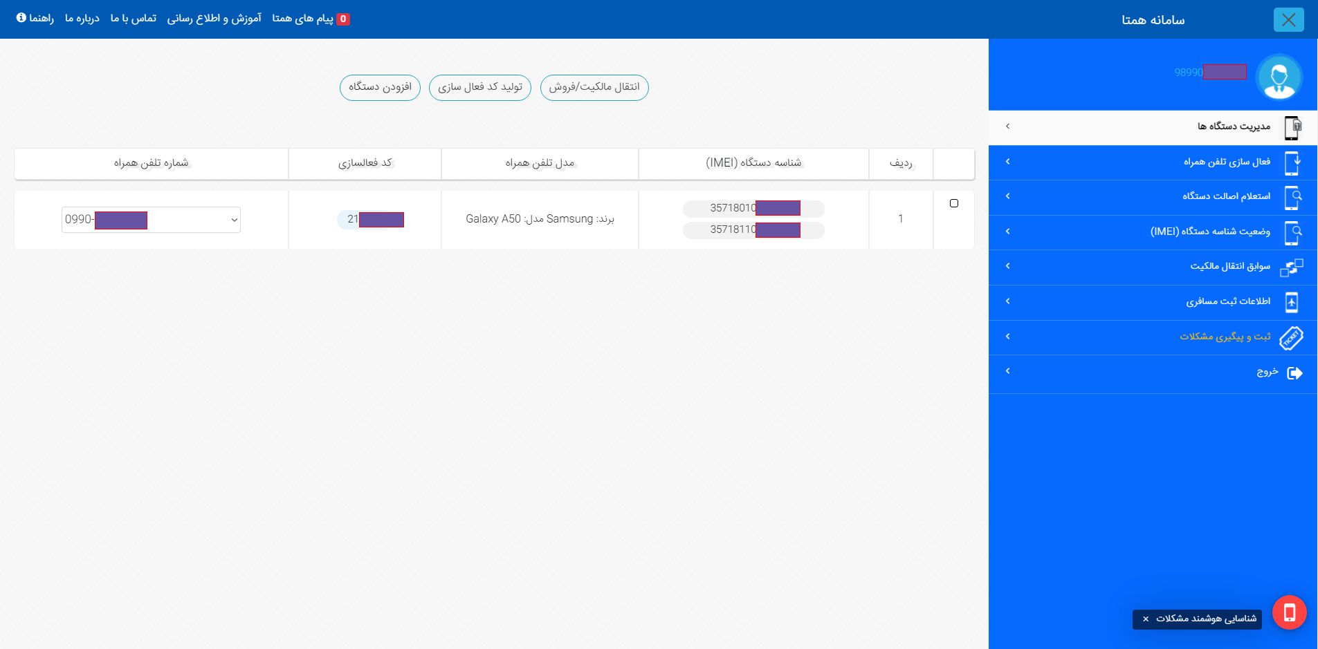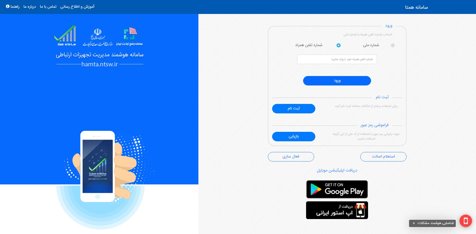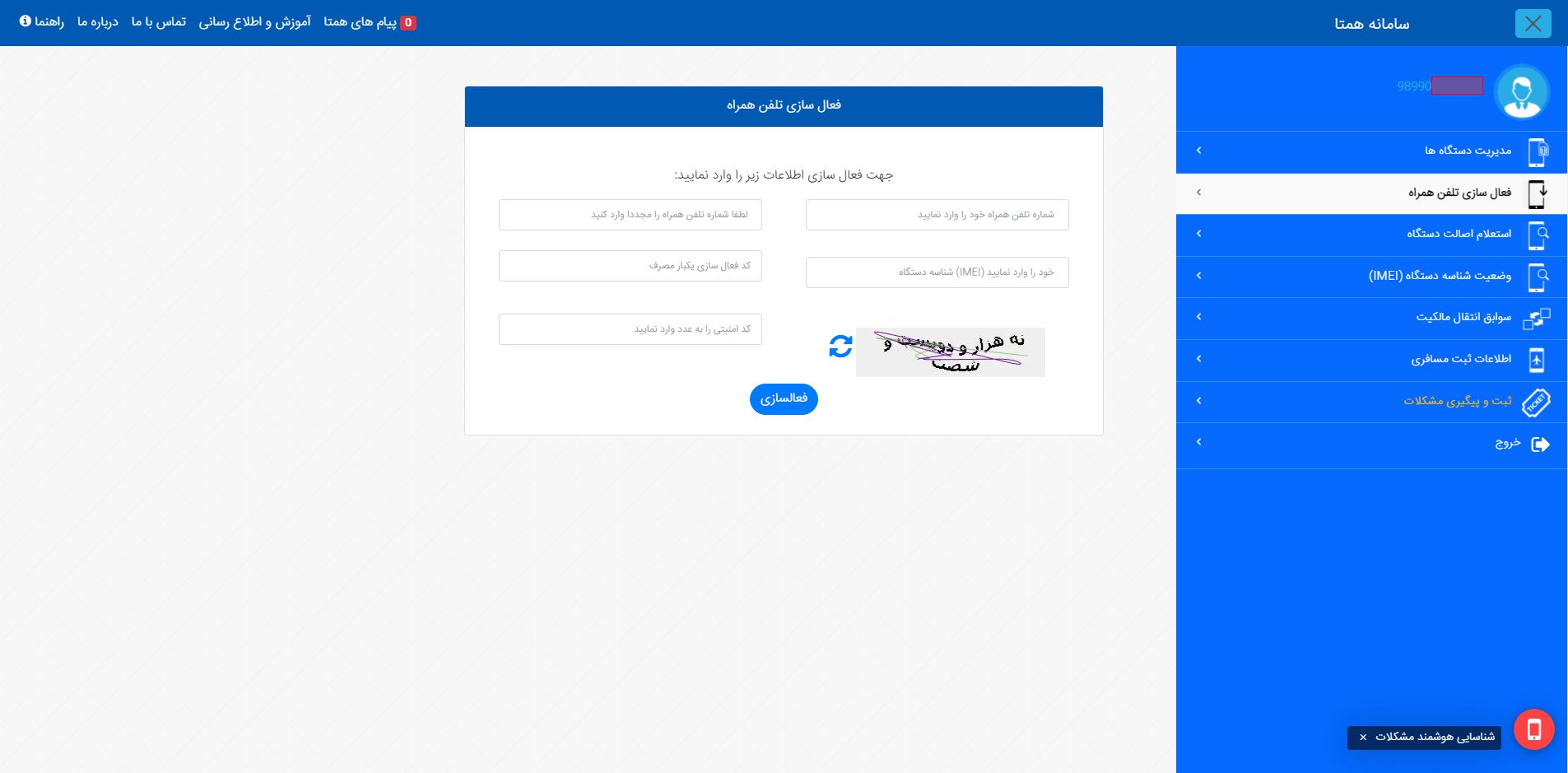فعال‌سازی گوشی از طریق وب سایت سامانه همتا