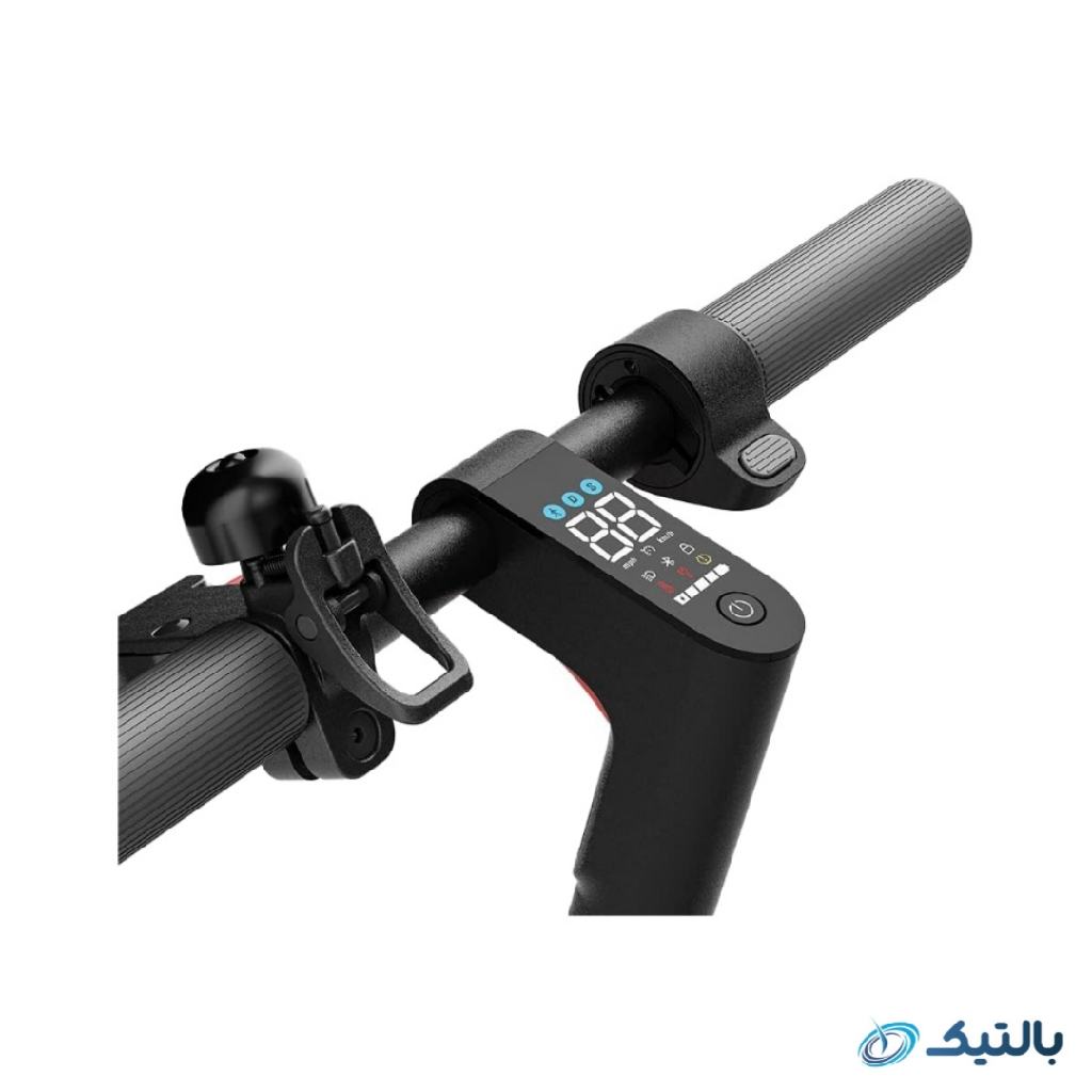 علاوه بر این، داشبورد دیجیتال تعبیه‌شده روی فرمان اسکوتر، طراحی بهینه‌ای داشته و تمامی اطلاعات ضروری را به‌صورت لحظه‌ای ارائه می‌دهد. سرعت فعلی، سطح باتری، وضعیت حالت حرکتی و اعلان‌های مهم از جمله اطلاعاتی هستند که در این قسمت نمایش داده می‌شوند. همچنین، سیستم هشدار نگهداری تایر نیز در این پنل گنجانده شده است تا کاربر بتواند به‌موقع از وضعیت سلامت لاستیک‌ها آگاه شود و اقدامات لازم را انجام دهد.